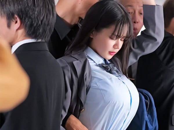 逃げられない満員電車で女子高生が性被害?!痴漢オヤジに豊満バストをセクハラ揉まれて子宮キュンキュンの美爆乳少女なw